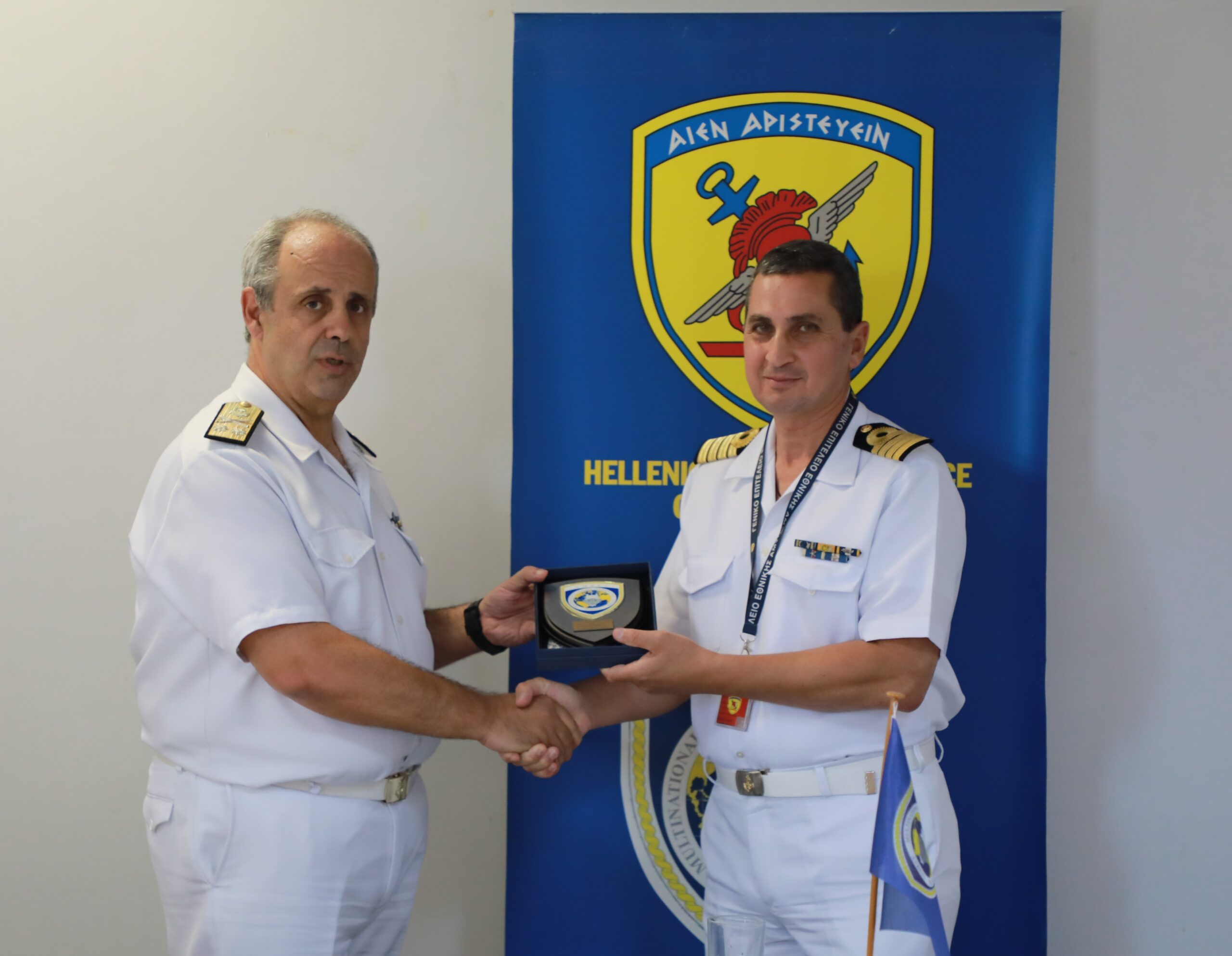 On Tuesday, July 09 2024, the handover ceremony of the Commander of the Athens Multinational Sealift Coordination Center (AMSCC) took place, from Captain Avraam Loukidis HN to Captain Lazaros Sidiropoulos HN, in the presence of C’ Branch Director of the HNDGS Rear Admiral Georgios Vlachos HN.