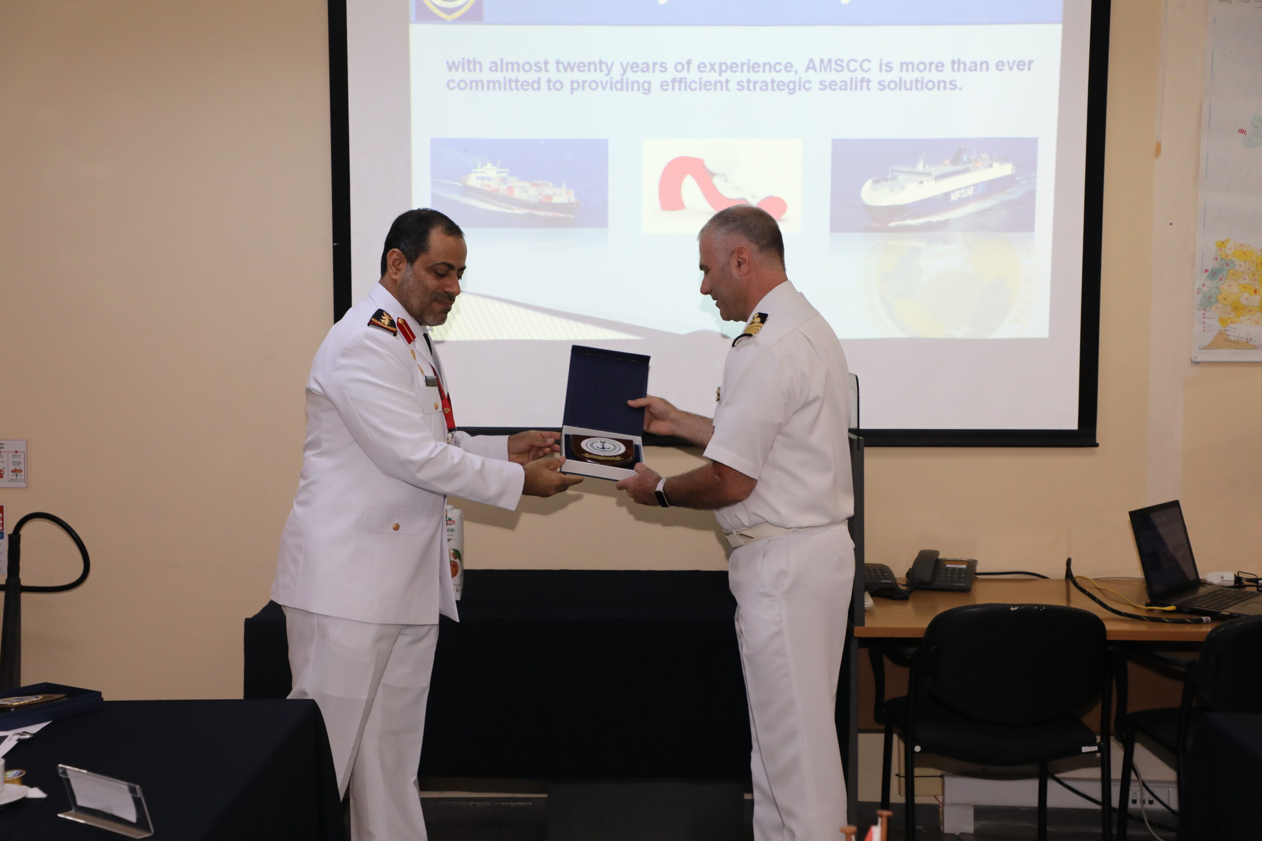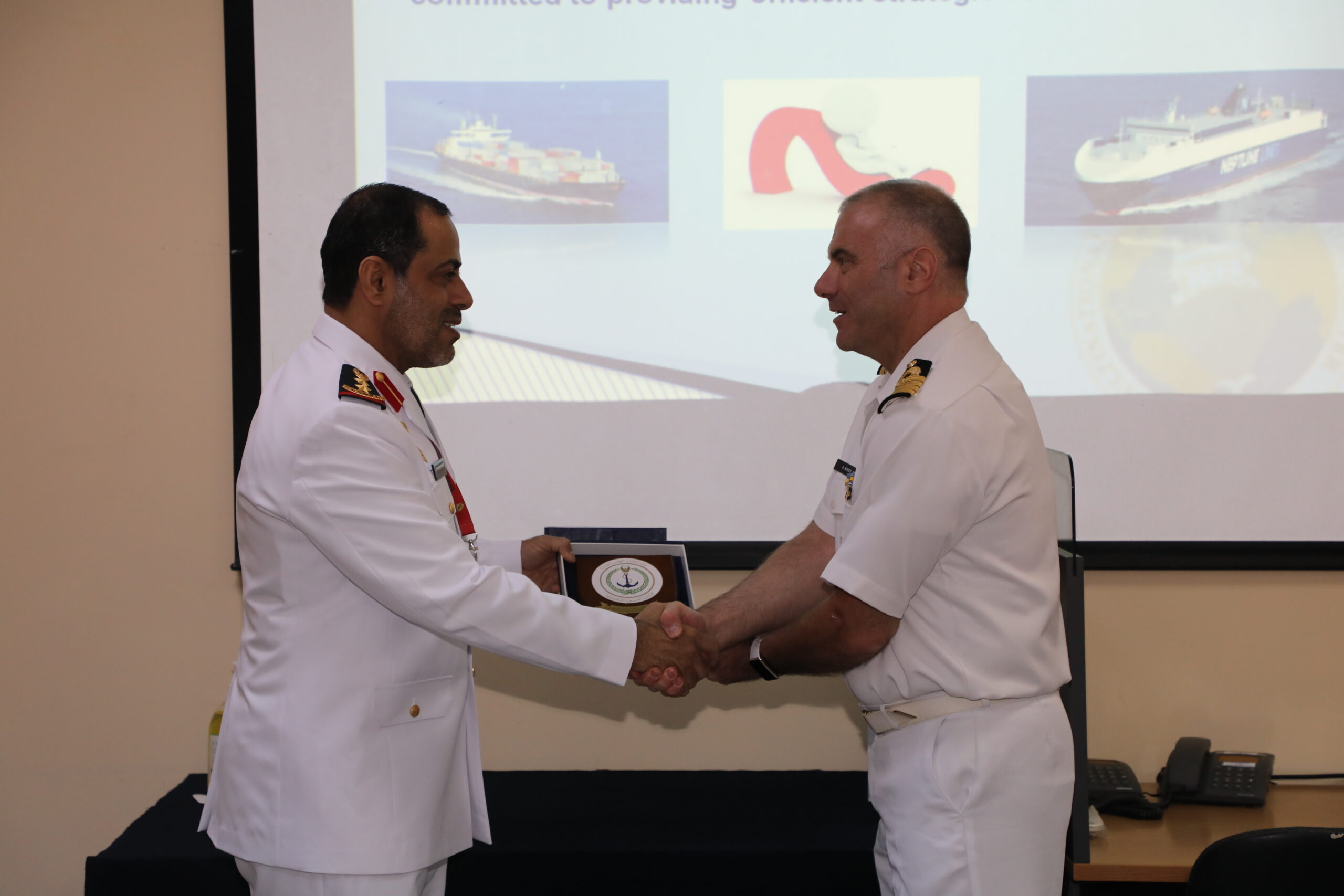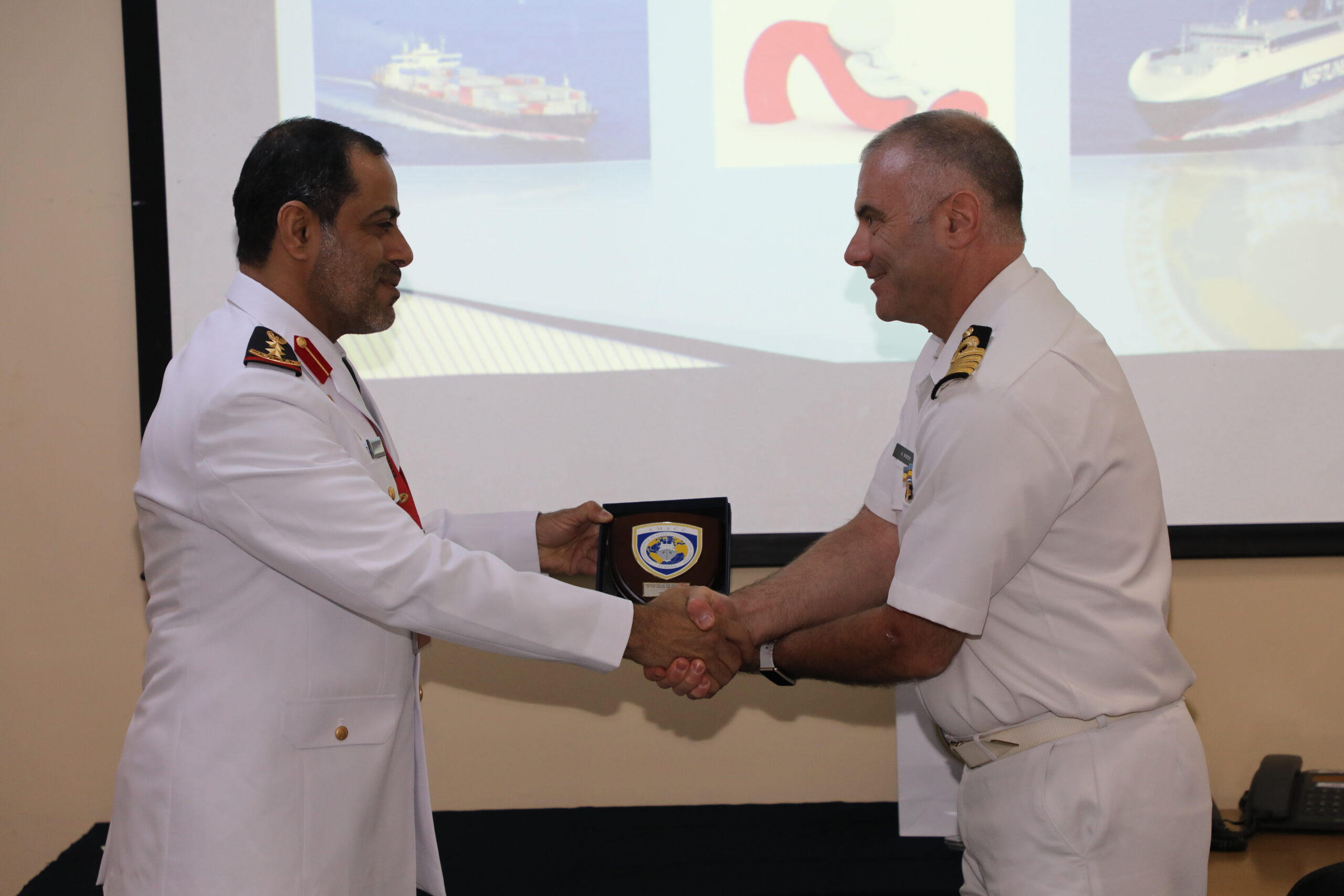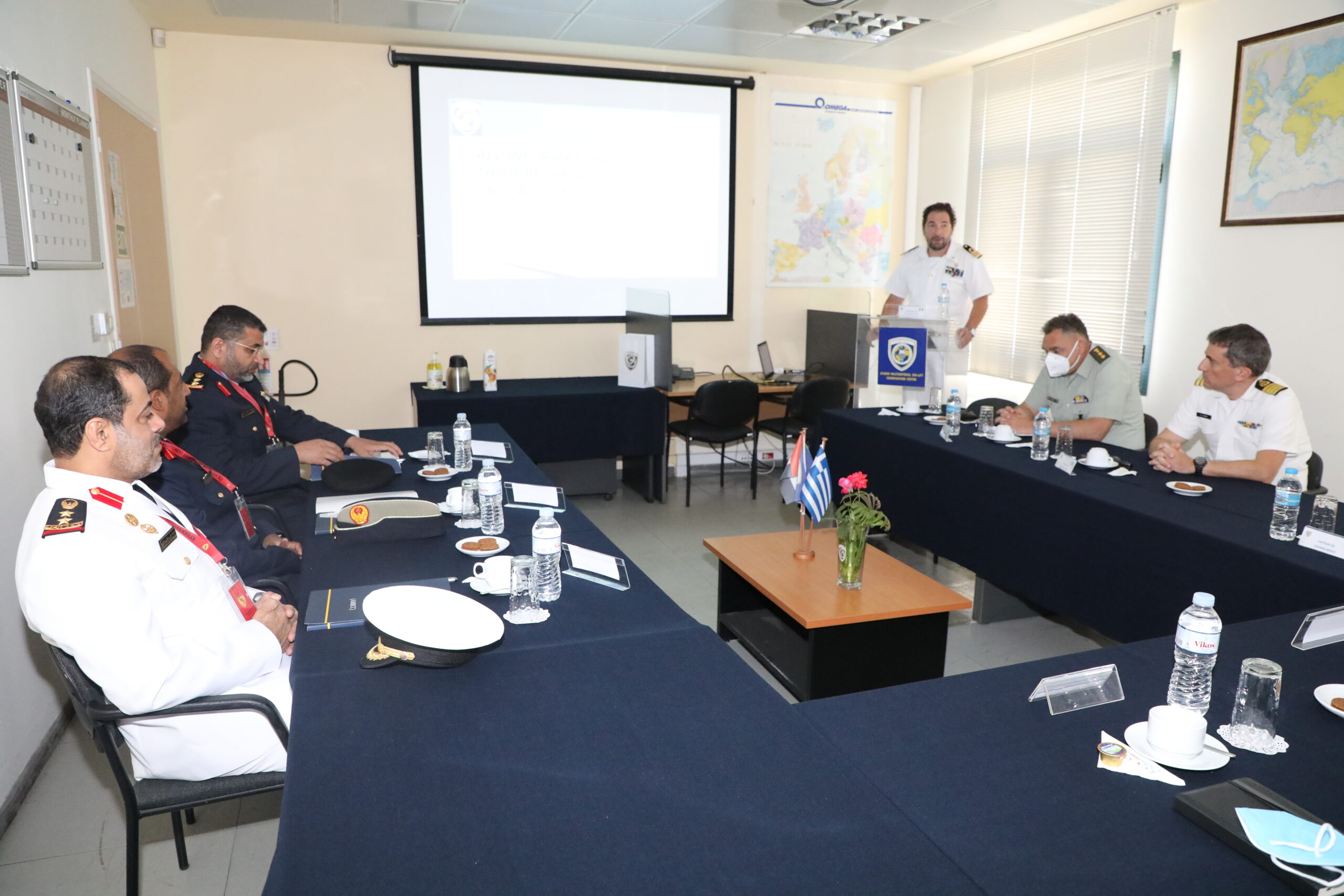 After being welcomed by the AMSCC Director, Captain (HN) Antonios Niros, the UAE Delegation was briefed by the AMSCC’s Deputy Director, Commander (ITN) Alessandro Stocco, on the AMSCC’s mission, capabilities and activities, as well as on the challenges and latest developments of the Center.